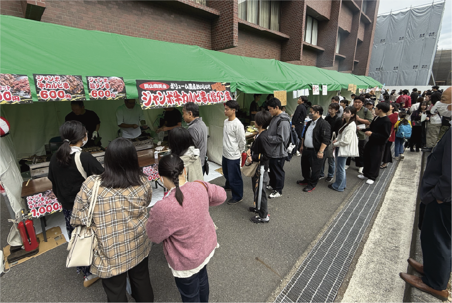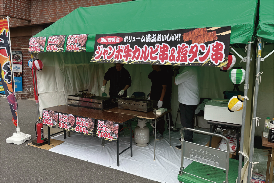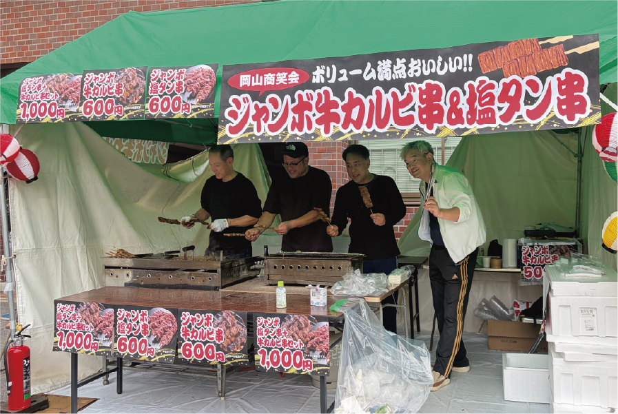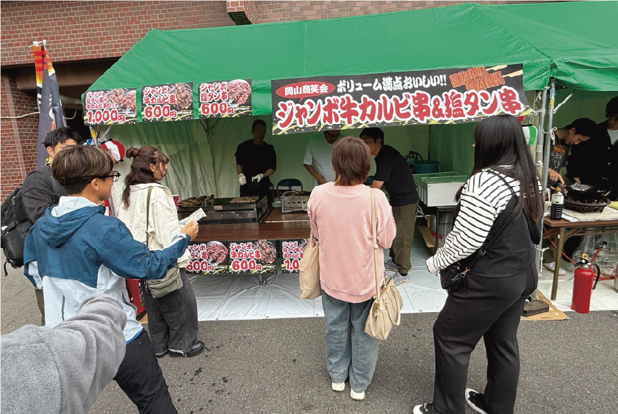 10月25日・26日に開催された岡山商科大学の学園祭に、今年も学生ブースと並んで商笑会ブースを出店しました。