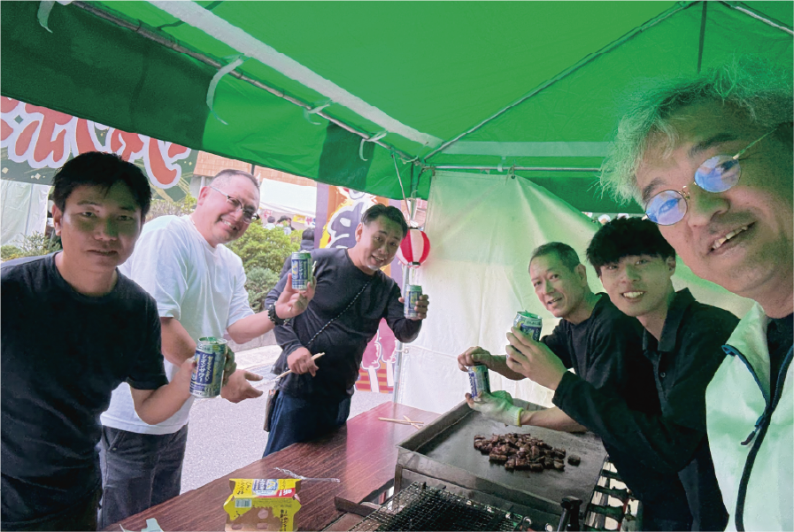 焼き担当の小林さん、袋詰め担当の豊島さん、呼び込み担当の須山さん・田村さん、買い出し担当の高田さんのチームワークが光り、見事に完売を達成しました。